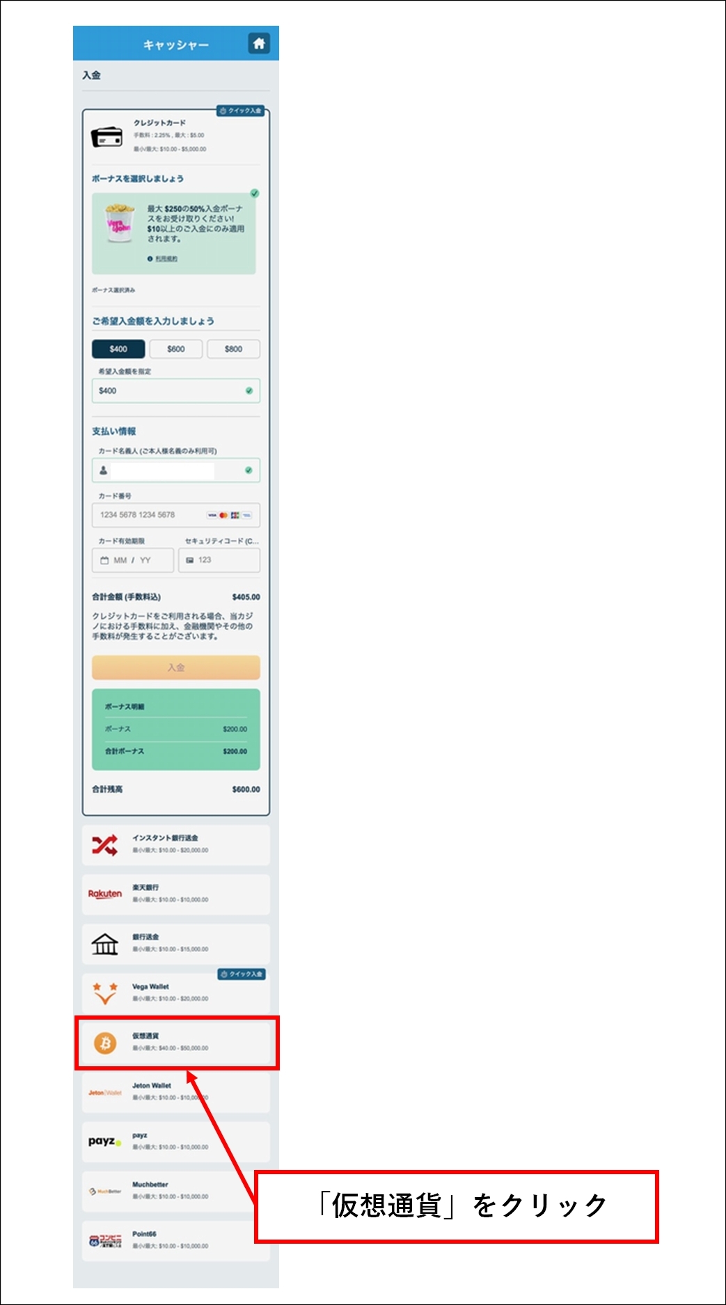 <ベラジョンカジノ ビットコイン 入金>