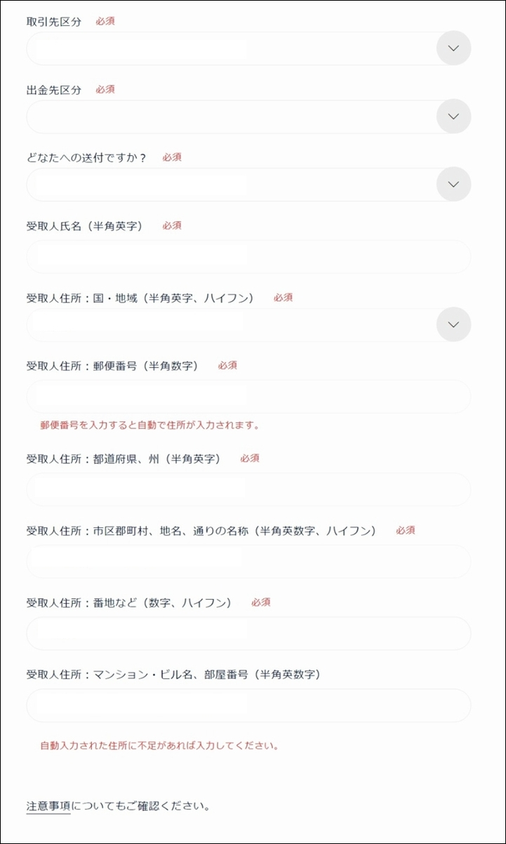 ・注意事項:内容確認してチェック