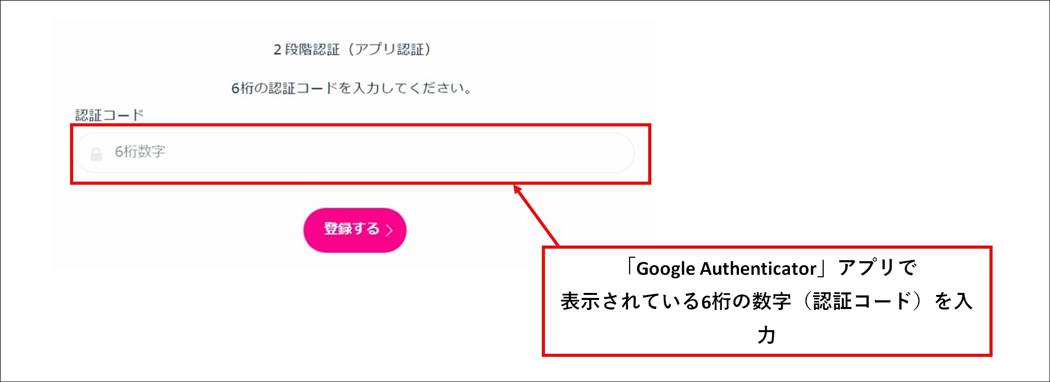 ・認証コード:再度「Google Authenticator」アプリの6桁の数字を確認・入力