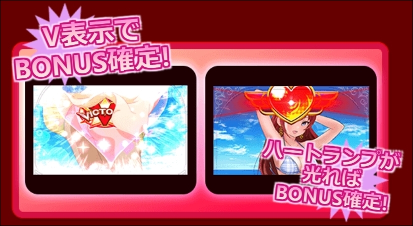 画面上部に設置されているハートランプが、派手に点灯した場合もボーナス確定演出になっています。