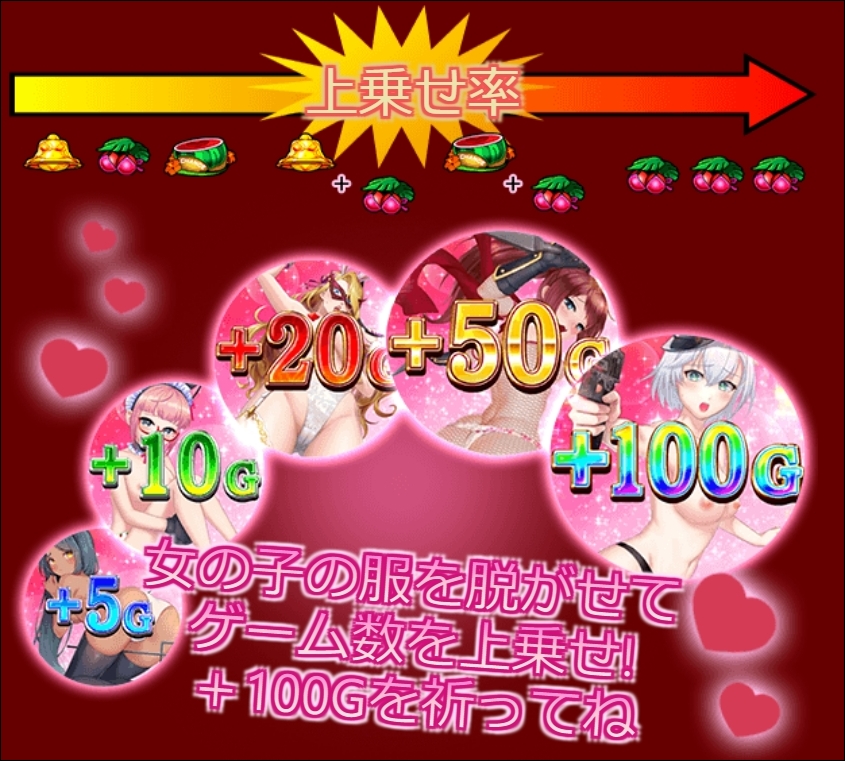 「+5G」から、最大で「100G」もボーナスゲーム追加の可能性があります。