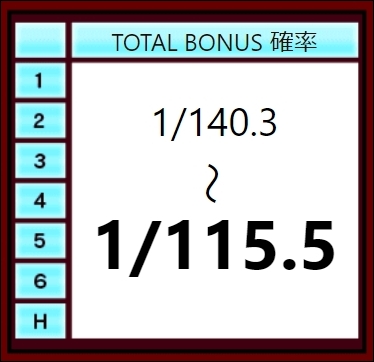 ■TOTAL BONUS 確率:1/140.3~1/115.5