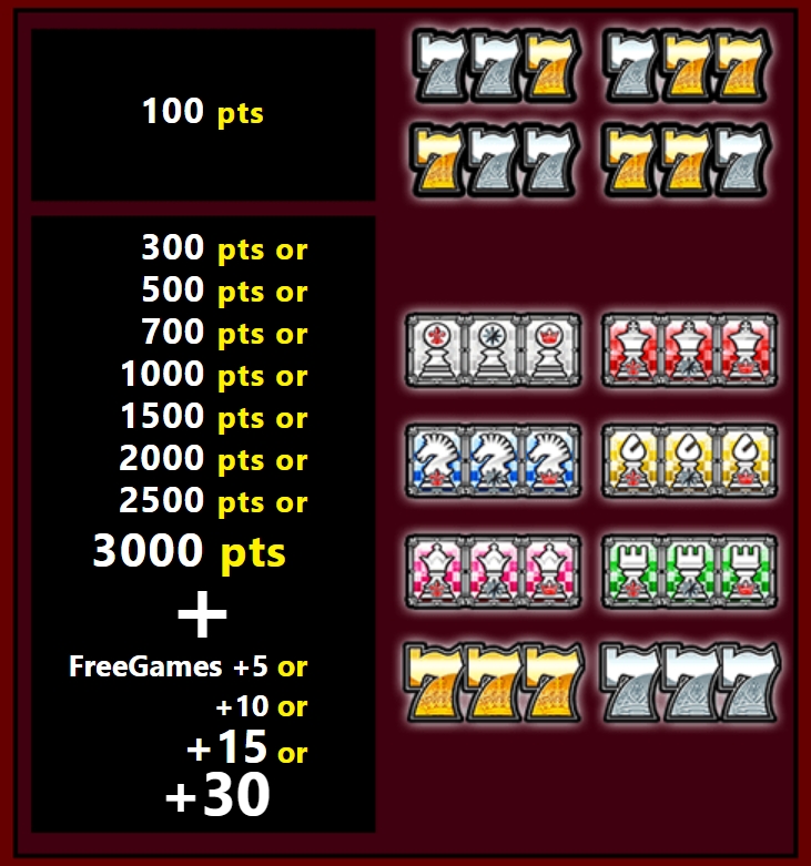 最大で配当「WIN3,000pts」、Free Game「30」が獲得できます。