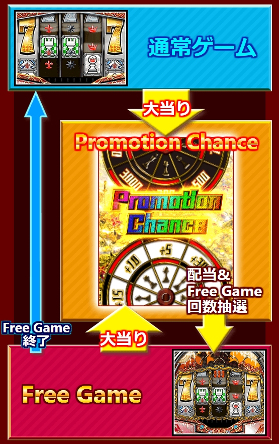 通常ゲームから大当たり獲得で「Promotion Chance」突入。